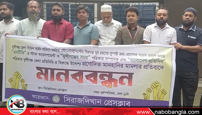 আরও দেখুন কেরানীগঞ্জে আওয়ামী দোসর সজীব বেপারী বিপুল পরিমাণ মাদকসহ গ্রেফতারমুন্সীগঞ্জে দুই সাংবাদিকের বিরুদ্ধে মানহানির মামলার প্রতিবাদে মানববন্ধন